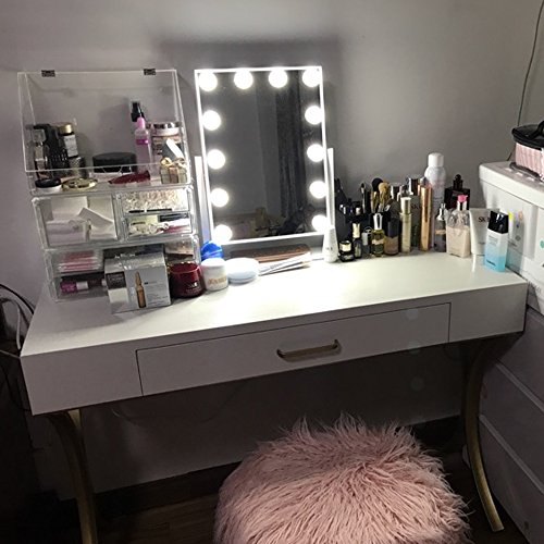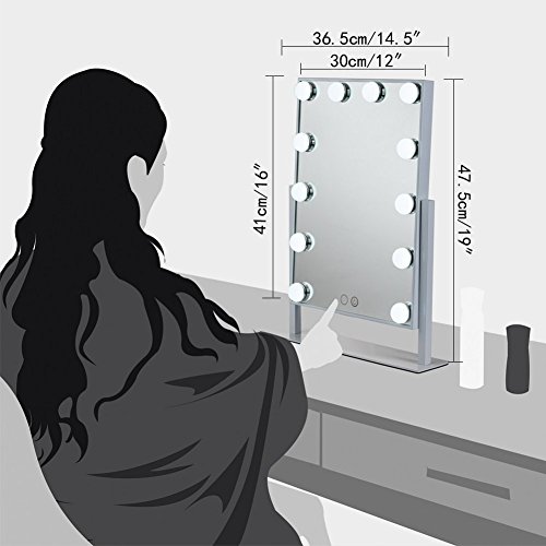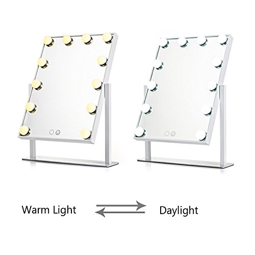 DOWRY Hollywood Vanity Makeup Mirror with 12 Led Bulbs Lights Larger Dressing Table Mirror (White)