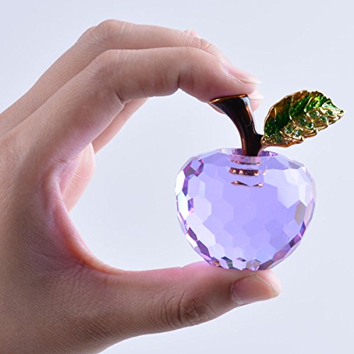 LONGWIN 40mm (1.6 inch) Crystal Apple Figurine Paperweight Purple
