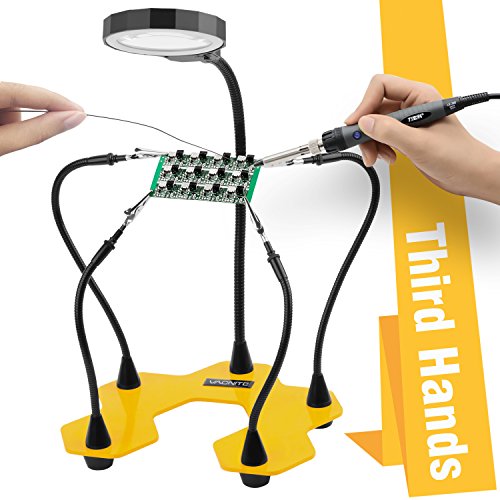 Vacnite Helping Hands Third Hand Soldering Tool and Vise - Daylight LED 3X Magnifying Lamp Rechargeable with 3 Adjustable Light Settings, Enhanced Base