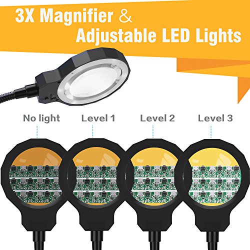 - LED LIGHT & Magnifying Glass(3X): LED light worke immediately and appears bright for your intended purpose when working, and the magnifying lens is clear of imperfections as well as the LED lights are well focused on the work area thanks to our scentific configurations.