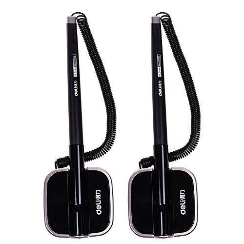 -. Feature : Black ink pens with 0.5mm ballpoint / Prevent your pens from walking away with plastic coil / Adhesive-backed base is simple to apply, no screws, no holes / Ideal for banks, retailers, office lobbies, hotel lobbies, tuition offices, etc / Pack of 3 counter pens, color comes in random, matt brown color base or matt silver tone color base.