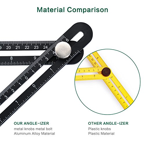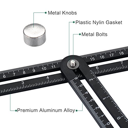 - HIGHLY VERSATILE: Moongo® Multi-Angle Measuring Ruler slides and locks into any desired angles to save you time on repetitive measurements. The four-sided ruler mechanism slides and locks into any desired angle as a reusable stencil for endless applications. No need to create a new template for each new job or remeasure the same angles over and over again- the measuring tool saves you both time and effort!