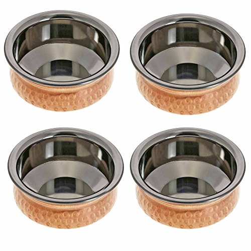 4" Handmade Indian Copper Bowls - Set of 4 Dinnerware Bowls - Stainless Steel Lining - 250mL Capacity