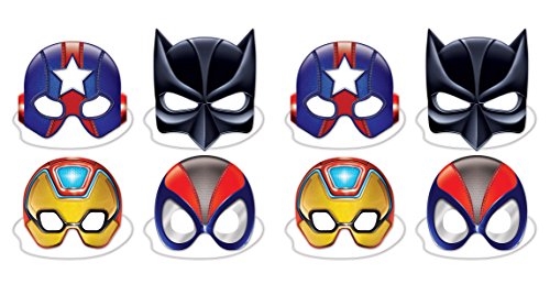 Beistle 60038 8Piece Deluxe Hero Masks, 8" - 10", Multicolored