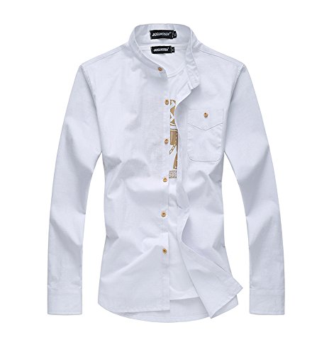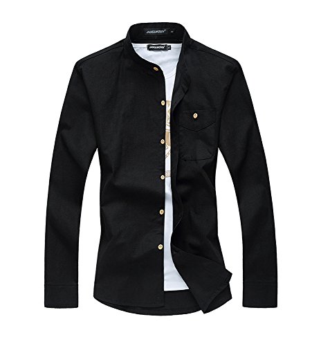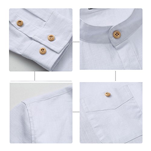 Cloudstyle Herren Freizeit Langarm leinen Hemd Stehkragen