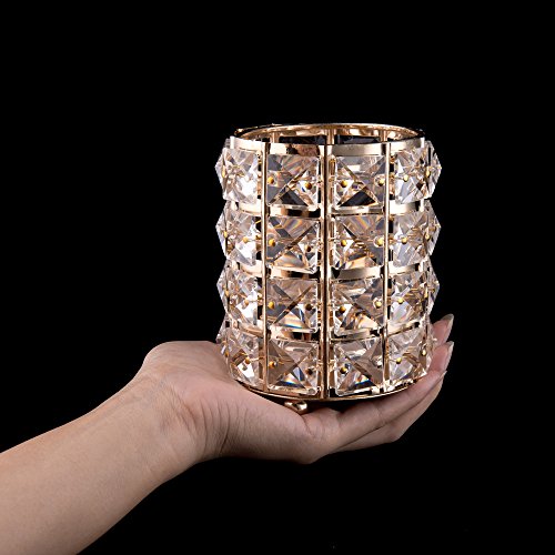 Feyarl Crystal Beads Makeup Brush Holder Pen Pencil Holder Storage Organizer Container (Gold)