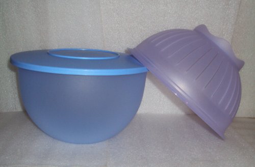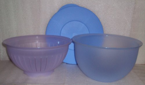 -. Title : Tupperware Impressions 18 Cup Large Bowl and Colander, Pastel Blue, Lavender Purple