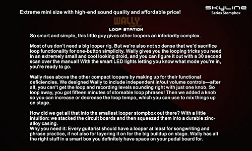 Studio : HOTONE Publisher : HOTONE Binding : Electronics Product Description Hotone's latest edition to the Skyline Series Stomp boxes, the Wally Looper, is the ideal pedal for guitar players looking for a convenient sound layering solution. This ultraportable pedal is packed with essential looper and layering features, and meticulously engineered to produce great tone in a roadworthy design. 0