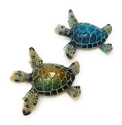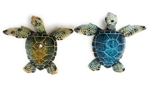 Decorative Sea Turtle Magnets, Set of 2, Blue and Green - Refrigerator or Metalic Bulletin Board, 4.5 Long