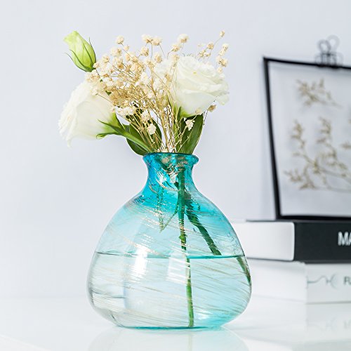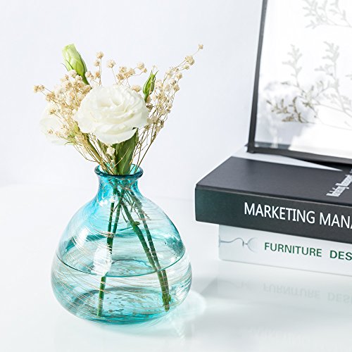 -. Title : Mkono Blue Bud Vase Glass Wedding Flower Vase Hand Blown Art for Home Decor