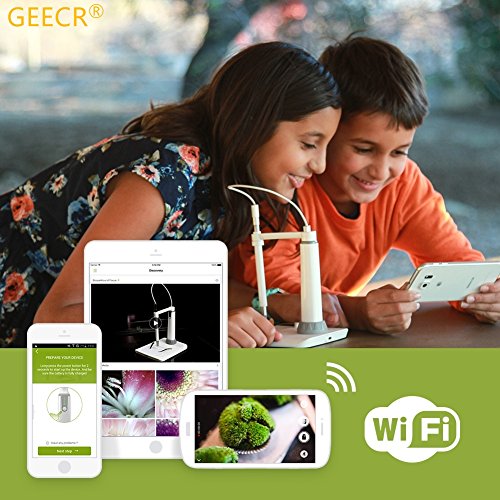 Microscope GEECR Wireless Digital Electron Wifi Microscope for Mobile (iOS & Android) and PC with Zoom 150x Rechargeable Waterproofing IP67 and High-definition for Kids Home&School Education