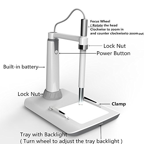 - 2.The Electron Microscope works under Wi-Fi mode, Rechargeable build-in batteries support 4 hours standby time, micro-USB charging mode. No cables necessary to connect to your mobile or PC. Backlighting objective table make the view be much clearer.