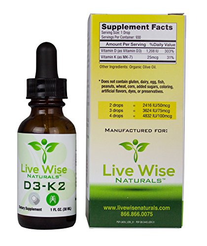 Almost everyone has heard the benefits of Vitamin D3. Without Vitamin K2, D3 does not absorb as well in our bodies. K2 directs calcium to our bones. Recent studies conclude that taking D3 together with K2 is the perfect combination. Studies also show that we are deficient in both Vitamin D3 and K2. As a lifelong health and fitness nut always looking for organic, naturally sourced foods and supplements, and not often finding them, I founded Live Wise Naturals to provide that very thing. These supplements are easily absorbed and used by our bodies, environmentally sustainable without all the crap. There will never be anything synthetic or lab derived in any of our products. MADE IN THE USA 100% MONEY BACK GUARANTEE 0 |