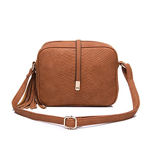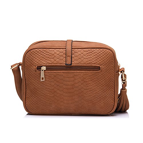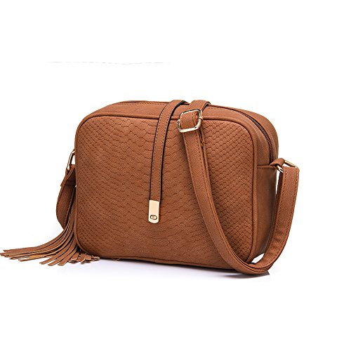 Side with tassels charm. Back with zipper pocket.Shoulder bag size:8.7" x 7.1" x 2.8"(WxHxD) strap height: 8.7"-20.5"