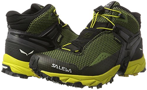 Binding : Shoes Product Description Salewa Ultra Flex Mid GTX Mountain Training Shoes The Ultra Flex Mid GTX is a men's waterproof, breathable mid-cut shoe designed for speed hiking and high-intensity mountain training. Built around Michelin's technical performance outsole, developed exclusively with SALEWA, the special rubber compound features a design with grooves and sculptures for outstanding traction and stability over hard and uneven terrain. Mesh Upper The Salewa Ultra Flex Mid GTX Mountain Training Shoes is constructed with a mesh upper, offering maximum ventilation, keeping your feet feeling cool and comfortable throughout a long and hard run. The Gore-Tex system ensures you have dry feet no matter the weather. The Ortholite insole also works hard to keep your feet feeling dry and healthy. The 3F Total System ensures the shoe has a stable fit, so you have total control when you need it. The flex collar allows the ankle to have a larger range of motion, this means you have better performance, especially with descents. Michelin Outsole The Michelin outsole with a specially designed tread allows for excellent traction and stability. The tread contains sculptures and grooves which allow you get maximum grip and stability on uneven and rocky terrains. 0