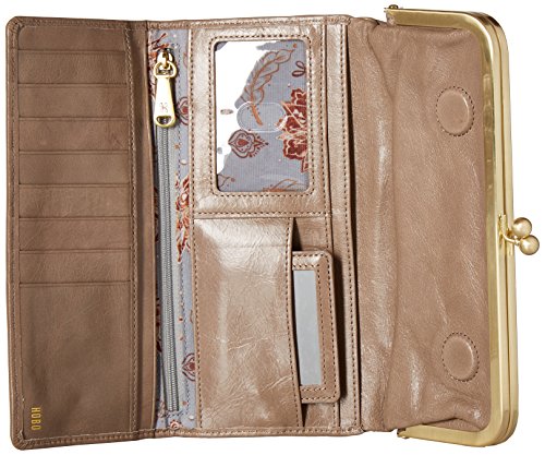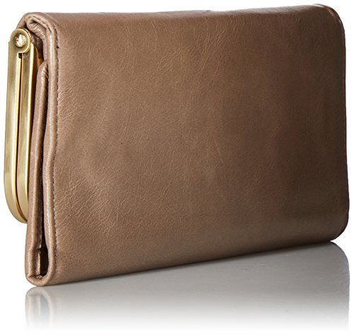 Studio : Hobo Publisher : Hobo Binding : Accessory Product Description Superbly mixing class and function, this beautiful Rachel Clutch Wallet by Hobo transitions perfectly from day to night! Hobo is all about making stylish yet purposeful women's leather accessories and this wallet is no different. This clutch is made from top-grain leather which has been extra tumbled for a unique, broken-in vintage look and shine. This fully lined clutch has a large exterior pocket with a brushed finish metal kiss lock closure. The interior features 8 card slots, 3 currency pockets, 1 clear ID window, 1 zippered coin pocket, and a slip pocket with a cosmetic mirror. Show off your vintage style with this gorgeous clutch! Measures 8.25" x 3.75" x 1.5", folds out to 11.25" wide. 0
