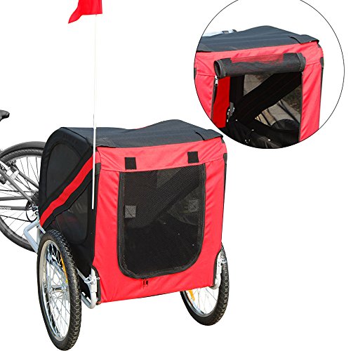-. Binding : Misc. -. Brand : Tenive -. Color : Black & Red -. EAN : 0701698140350 -. Feature : This comfortable pet trailer allows you to hang out with your pets while they have difficulty in movement / Pet trailer designed for use as a pull-behind bike trailer, easily assemble and fold down for storage / Waterproof polyester fabric for outdoor long time use and easy for you to clean up / Breathable mesh fabric material perfect to keep bugs, mildew and mold away; with zippered screen help your pet to access quickly and easily / Ideal for pet up to 88 lbs. Item Size: 55"L x 35"W x 42"H. Item weight: 31 lbs -. Label : Tenive -. Manufacturer : Tenive -. Model : FC-0143 -. MPN : FC-0143 -. NumberOfItems : 1 -. PackageQuantity : 1 -. PartNumber : FC-0143 -. ProductGroup : Pet Products -. ProductTypeName : PET_SUPPLIES -. Publisher : Tenive -. Size : 55"L x 35"W x 42"H -. Studio : Tenive -. Title : Tenive Retractable Pet Trailer- Pet Carrier w/ Suspension, Black & Red -. UPC : 701698140350