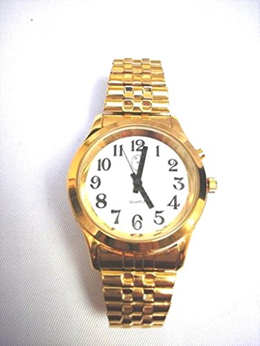 -. Binding : Health and Beauty -. Brand : Active Products Plus -. Department : mens -. EAN : 0700112427787 -. Feature : Talking Watch / E Z to See Bold Black Numbers / E Z to See Bold Black Hands / Speaks the time in AM or PM / Deluxe Expansion Band -. IsAdultProduct : 0 -. Label : APP OWN IMPORT -. Manufacturer : APP OWN IMPORT -. Model : AP2368 -. MPN : AP2368 -. NumberOfItems : 1 -. PackageQuantity : 1 -. PartNumber : AP2368 -. ProductGroup : Health and Beauty -. ProductTypeName : HEALTH_PERSONAL_CARE -. Publisher : APP OWN IMPORT -. Studio : APP OWN IMPORT -. Title : Men's Deluxe Talking Wrist Watch Gold Tone -. UPC : 700112427787