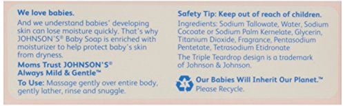 Johnson's Baby Bar Bathe your baby with gentle and soothing Johnson's Baby Bar to keep their skin smooth and healthy. With a gentle fragrance, rich lather and no-tears formula, this is a bathing bar you'll both love. Why You'll Love It: Provide nourishment to your baby's skin with this bathing bar to leave their skin smooth and moisturized
