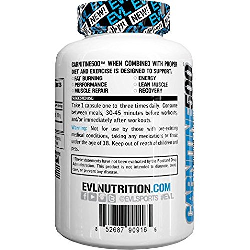 Evlution Nutrition Carnitine500 (60 Serving, 500mg capsules)