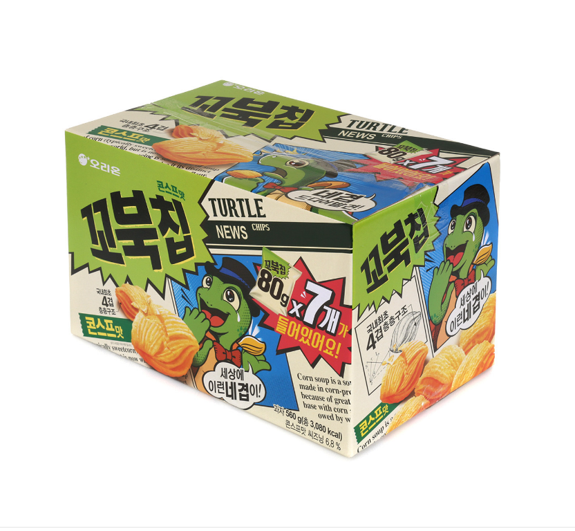 7PCS-560g-19oz-RION-Korean-Snack-Kkobuk-Turtle-Chips-4-Layers-Corn-Soup-Flavor