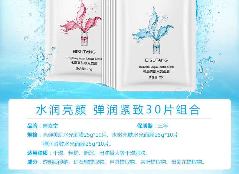 水光面膜 补水保湿水润秋冬30片装组合套装收缩毛孔护肤女