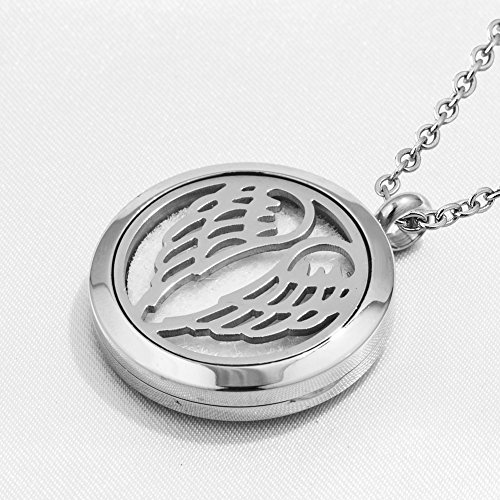 GREAT SET - 1 angel wing locket pendant(30mm) + 1 chain(18 inches) + 12 multicolored refill pads