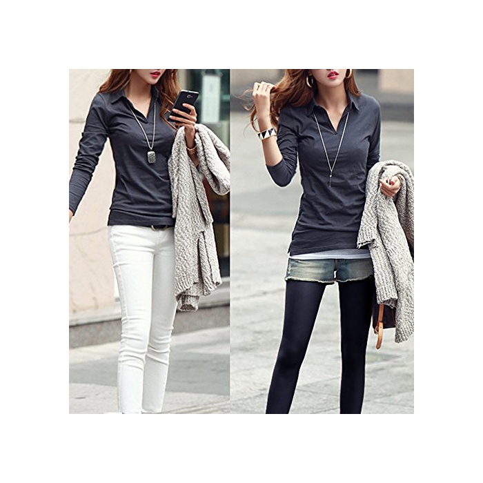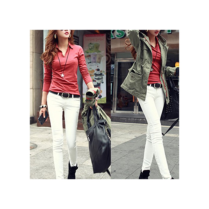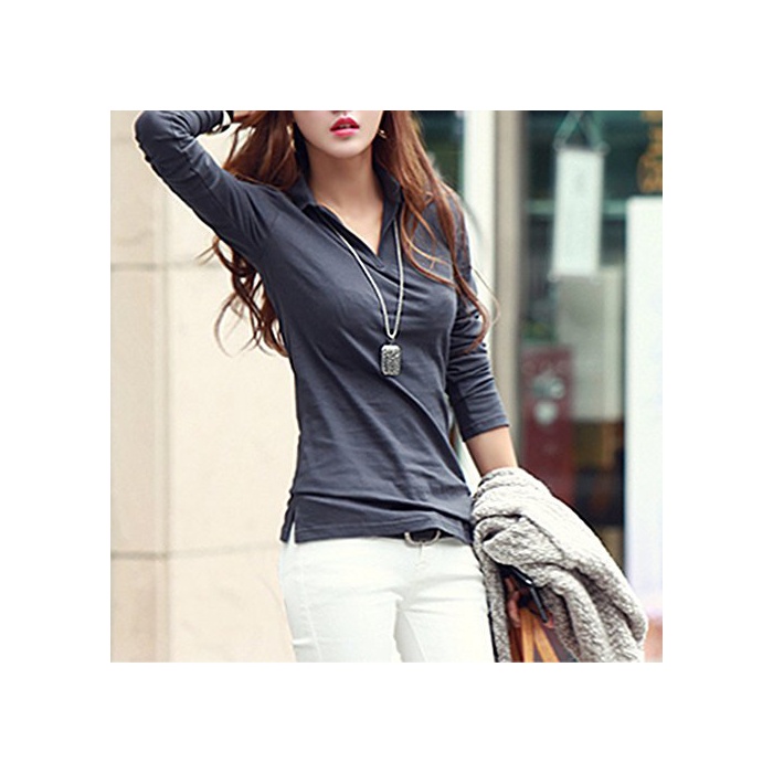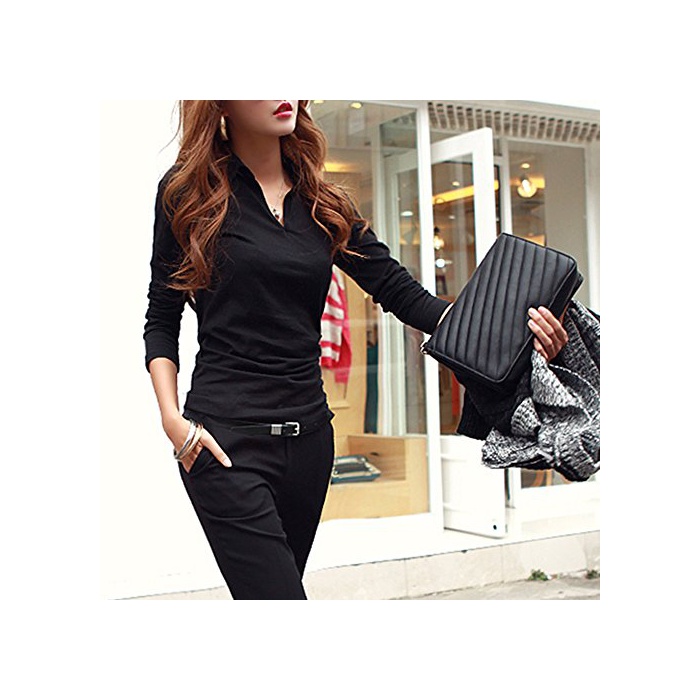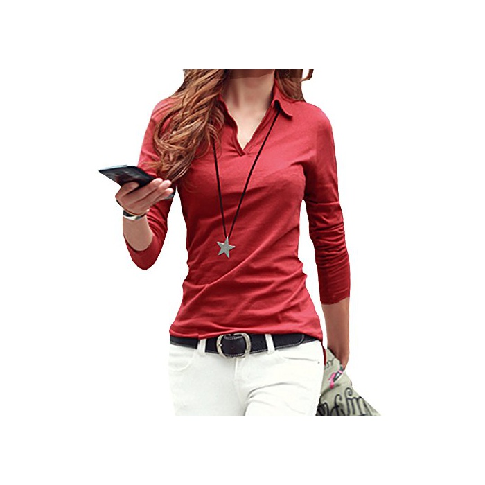 STELLA&CHAM 어른 빈틈《파》 셔츠 페미닌 컷소우 폴로 내츄럴 섹시 V넥 레이디스 호소미 네 심플 긴 소매 0074 XXL 빨강