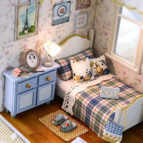 -. Feature : It's need your DIY model,all furnitures and accessories shown in the pictures are included. With Dust Proof Cover and Led Light / Each steps has pictures to show and help you how to assemble by our electronic instruction. (please kindly email us if we not send it to you) / Finished Product Size:5.9"x5.1"x4.3";Weight:0.49 kgs;Assembling Time: 1-3 days,1:24 scale / Some DIY tool should you prepared,such as rules,knives.This item can not be installed music box,so not include the music box. / DIY dollhouse is the IDEAL Birthday/Christmas/Valentine's Day GIFT to your lover, family, kids,friends,it can express your great love due to it made by yourself.