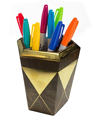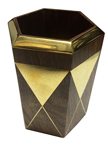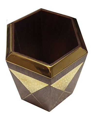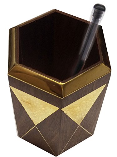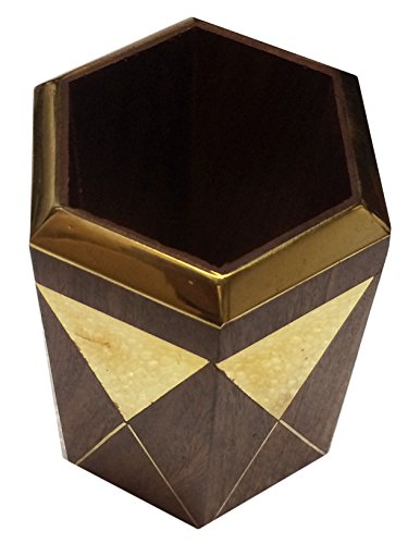 Valentine Day Special Gift, Wooden Octal Pencil Pen Stand Golden Strip Work Pen Holder, Wooden Pen Holder, Pen Holder For Desk, Wooden Pen & Pncile Stand, Brown Color Sze 4 X 3 Inch