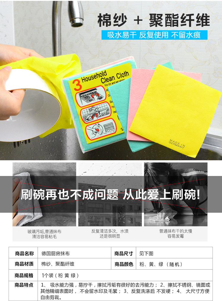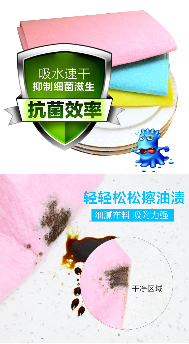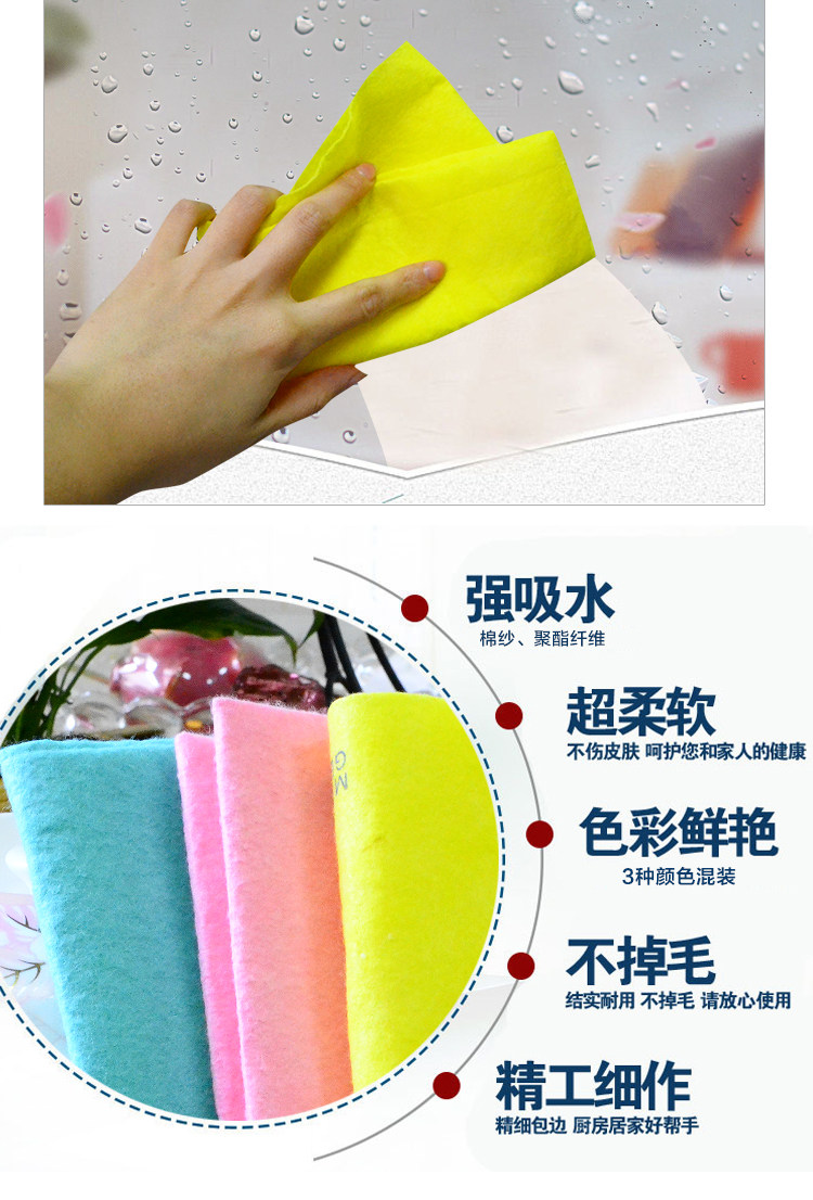 厨房洗碗布 家用擦桌清洁抹布 超吸水不掉毛不沾油 3条装