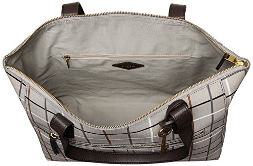 -. Title : Fossil Fiona Tote Grey Grid P.R.Int