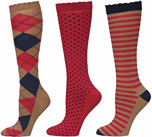 -. Feature : This three-pack of raspberry color socks, with different coordinating designs, is made from a blend of comfortable fabrics for the ultimate foot solace. / • Scalloped tops / • Bamboo/Cotton/Nylon/Spandex