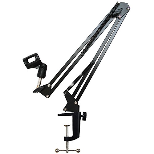-. Feature : ►Premium Quality: Sturdy all-steel construction mic stand arm with rust-proof surface treatment, high reliability; Double-braced solid arms & dual thickened suspension springs to prevent microphone from sliding down, high stability; One-piece rugged aluminium clamp (not welding), high durability; 31.5"/80cm vertical reach, holds up to 3.3lbs/1.5kg (long term) / ►Remarkably Compact: Simple to install and easy to use, convenient to be carried around; Fully fexible, 360-degree rotation, you can extend, tilt and angle your mic exactly where needed / ►Great Compatibility: The included mic clip is suitable for standard handheld microphone, and Blue Yeti/Snowball can be mounted with 5/8" threaded screw adapter at the end of the stand / ►Wide Application: For professional or beginner use, perfect for studios, broadcasting, families, podcast, stages, TV stations and more / ►What You Get: 1 x microphone stand, 1 x mounting clamp, 1 x standard mic clip (with 5/8" screw adapter), 1 x user guide and hassle-free customer support