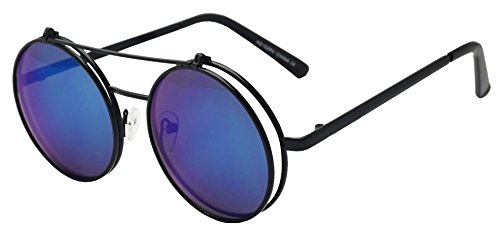 These awesome Django flip-up inspired sunglasses are coming in hot. They are crafted with a slim double bridge bar and mesmerizing flip up color mirrored lenses. These high fashion stylish sun shades are perfect for indoor and outdoor activities. No more need to take your stunning sunglasses off. With these you simply flip the cover lens up and continue to rock your fabulous look throughout your day. They are made with a metal based frame, classic metal hinges, English style nose pieces, and UV protected poly-carbonate lenses.Feature