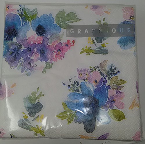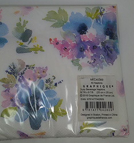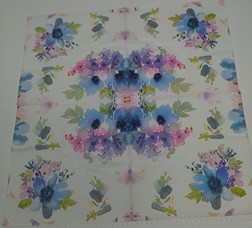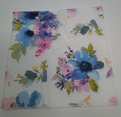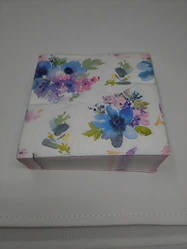 Beverage Napkins Floral Design (40 per package) (80 napkins, Blue NKC40369)
