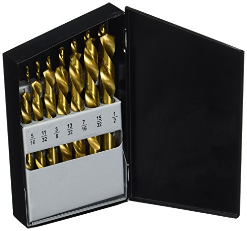 Set includes: 1/16, 3/32, 1/8, 5/32, 3/16, 7/32, 1/4, 9/32, 5/16, 11/32, 3/8, 13/32, 7/16, 15/32 and 1/2 inch bits; Comes in metal index case for easy storage