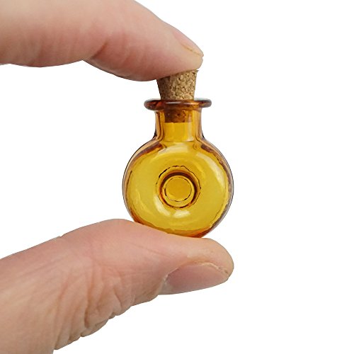 - Cute Small Glass Bottles Set - Color: amber; Material: glass and wood; Shape: donuts shape; Quantity: 20 pieces.