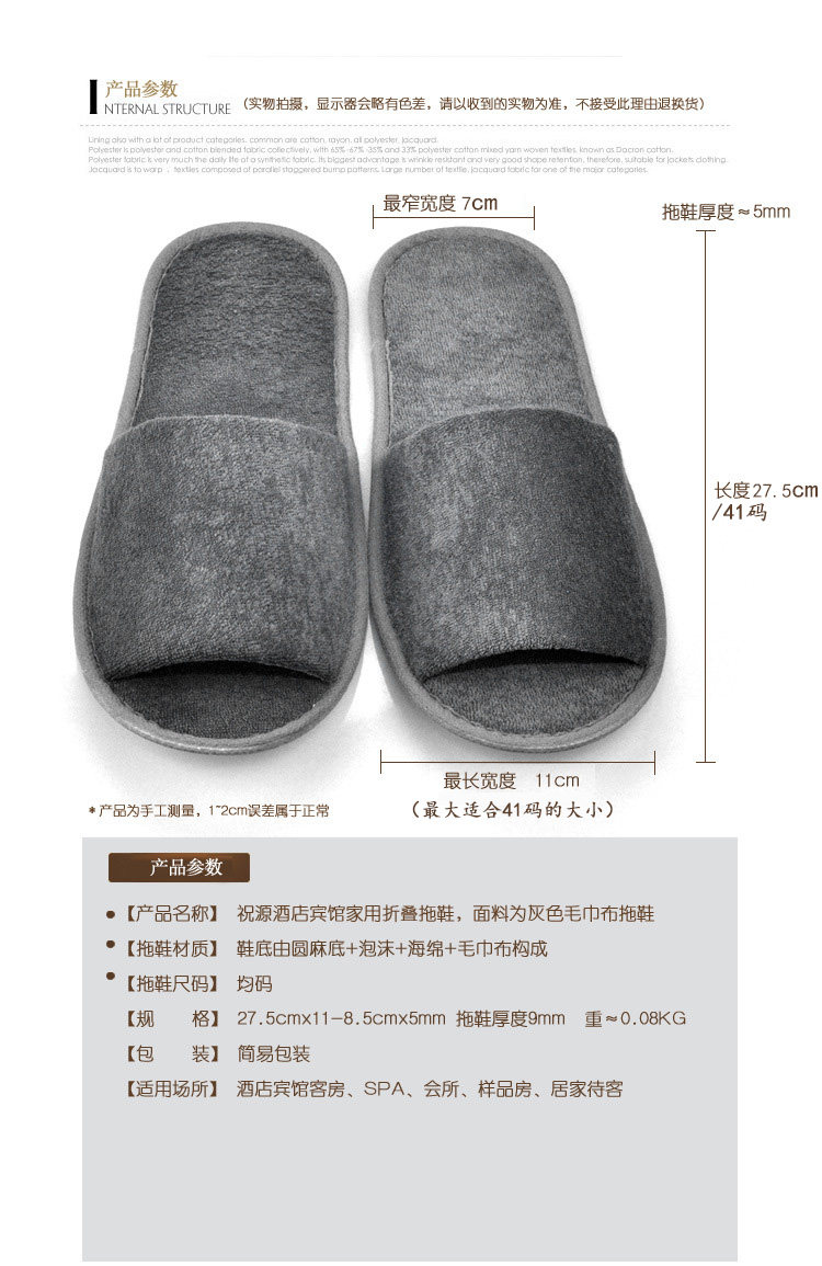 旅游居家用待客飞机宾馆酒店一次性拖鞋夏季防滑家居防水加厚灰色