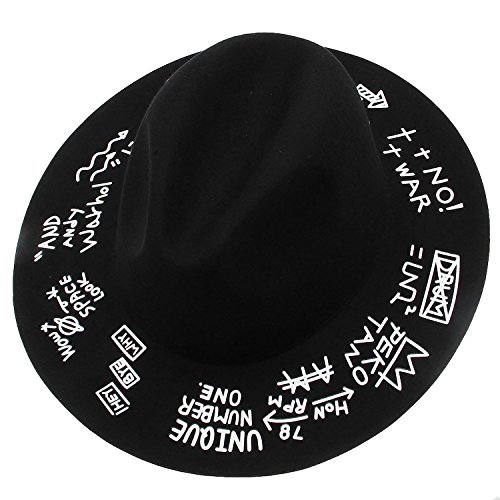 -. Binding : Apparel -. Brand : YueLian -. ClothingSize : One Size -. Color : Multi -. Department : womens -. Feature : Shipment from China / Head Circumference(Approx): 22.4''=57cm / Package: 1 unsexy hat / Durable & ideal for wear in the great outdoors / Perfect for hiking, gardening or a day at the beach! -. PackageQuantity : 1 -. ProductGroup : Apparel -. ProductTypeName : HAT -. Size : One Size -. Title : YueLian Unisex Fedora Woolen Hat Wide Brim Floppy Jazz Cap Church Derby Cap White Graffiti