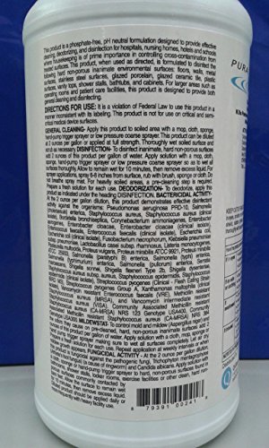 -. Feature : Hospital Grade - CONCENTRATED - Professional Strength Cleaner & Disinfectant / Kills 99.9% of Mold and Mildew, odor Causing Bacteria - Bactericide, Virus's - Viricide, Fungus' - Fungicide / Use only one product to effectively clean, degrease, disinfect, remove stains, control mold and mildew and deodorize. / Kills Bacteria, Fungus and Virus's in 30 seconds - Proven / Ready to Use - Custom Formula for Quick Cleanup and disinfecting
