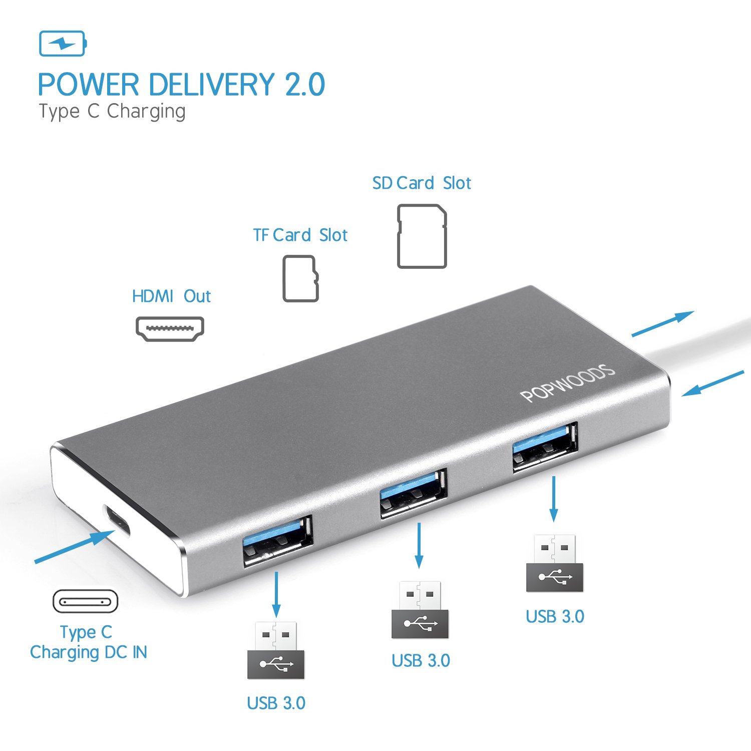 1 * Type C Main Port Supports Type C new equipment such as MacBook 2016, MacBook 2017, and Farway PC.