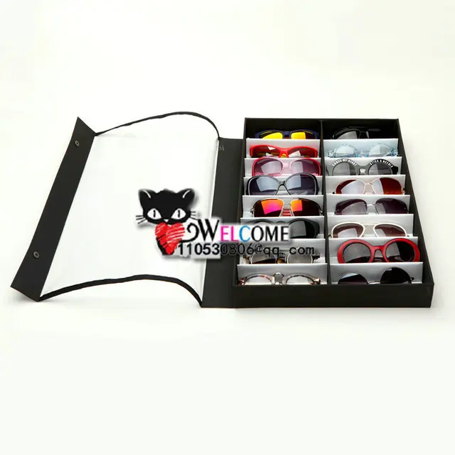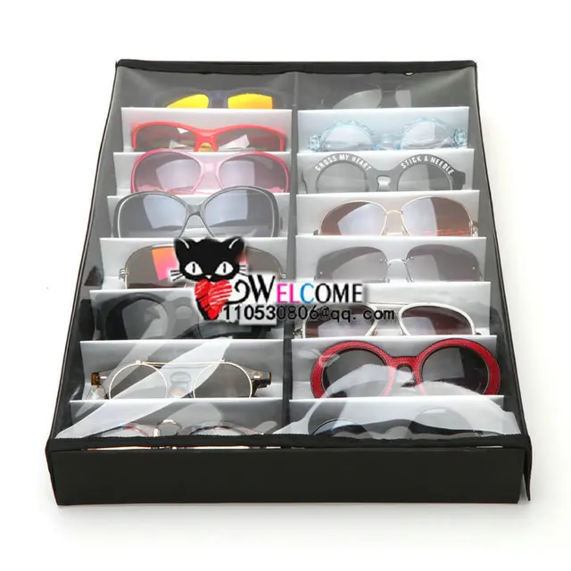 16 그리드 다기능 선글래스 디스플레이 상자, 투명 커버 유리 디스플레이 상자, 안경, 보석, 시계, 액세서리 디스플레이