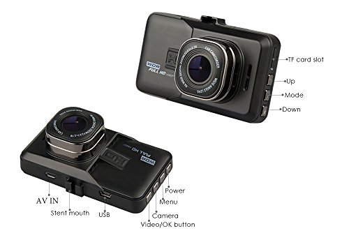 -. Feature : Full HD 1080P(1920x1080)/30fps Car Dash Cam DVR with a true vision 170°wide angle lens.Before and after the 720 X 480 p rear lens, lens video at the same time. / Turn on/off and record/stop automatically function for easy to use. (Note:Please use High Speed Class10 above SD card, TEH CARD NOT INCLEDE). / Loop recording provides unlimited storage from the TF card, which automatically overwrites the oldest footage when the memory card gets full. / 3.0 inch screen for convenient viewing without the need to attach it to a computer or external screen! The camera will turn on and automatically start recording, so you won't worry about forgetting to capture every moment. / G-Sensor can lock up current DVR recodering during critical moments (such as car accidents), thus protecting your high-quality recordings.