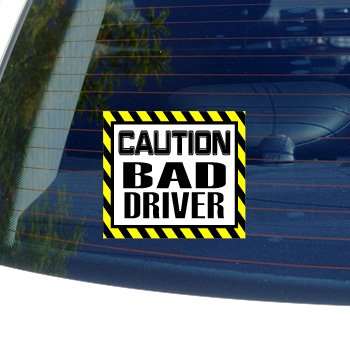 -. Title : Caution Bad Driver - Window Bumper Laptop Sticker