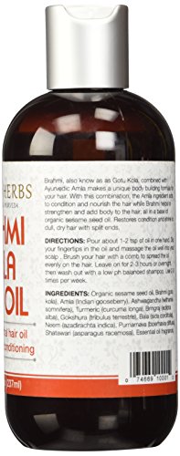 Brahmi, also know as as Gotu Kola, combined with Ayurvedic Amla makes a unique body building formula for your hair. With this combination, the Amla ingredients act to condition and nourish the hair while Brahmi helps to strengthen and add body to the hair; in a blend of natural Sesame seed oil. No artificial fragrance added. A premium herbal hair oil which you will feel the difference after one use...guaranteed!