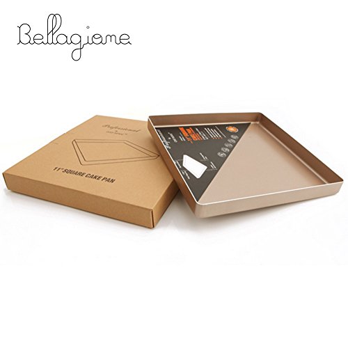 Durable nonstick coating easy to clean. Dishwasher and metal spatula safe. Oven up to 450 degrees Fahrenheit. Won't corrode or rust even with heavy use. 11 x 11 inch square cake pan, 1.2 inch height fit for your oven.