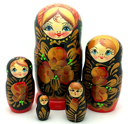 -. Title : Russian Nesting Doll Matryoshka Hand Painted Nesting Doll set of 5 / Traditional 5" Tal Black Gold Redl