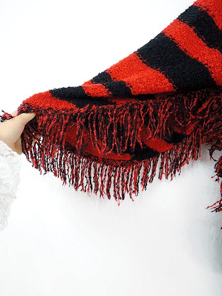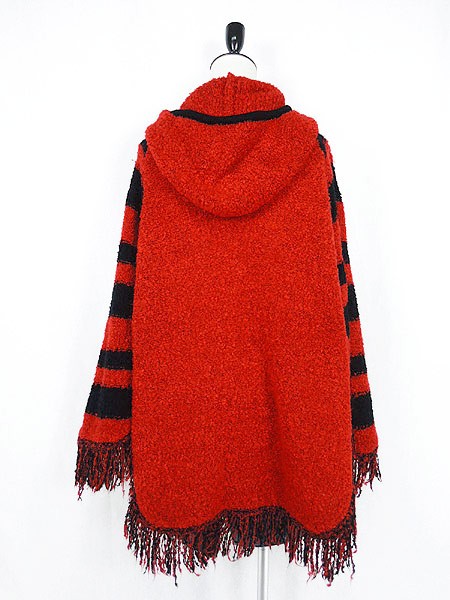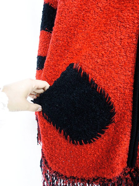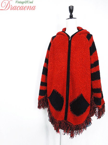 Ladies ブランド- カラー赤・黒 メール便不可 コンディション★★★ 素材ビスコース(レーヨン)35%・ポリエステル65% 表記サイズ記載なし 実寸サイズ 着丈 95(フリンジ込) cm 身幅 67 cm 袖丈 70(フリンジ込) cm ラグラン袖の為、襟元から袖先までの計測 ※ウエスト・ヒップ以外は平置き採寸