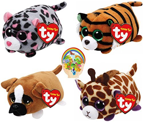 -. Feature : Adorable gift set of 4 Mini Safari Friends: Tiggy Tiger, Miles Leopard, Mabs Giraffe, and Diggs Dog / Ty Teenys aprx size 4 inches long; 3 years + / Great gifts for boys and girls. New in 2016 / Bonus sticker may vary / Official product from Ty's wildly popular Beanies Collection